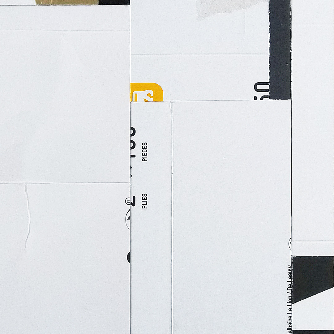 Abstract collages made mostly from various pieces of packaging paperboard. Volume II.
